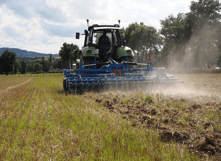 NEOLAB TWIN effectue un travail du sol sans retournement avec des lames «Michel» sécurité boulon jusqu'à 0m30.
