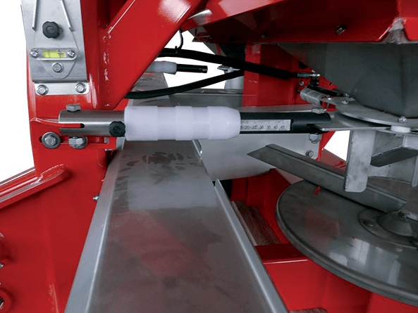 Permet de réaliser avec précision les bordures. Il est télécommandé hydrauliquement depuis la cabine du tracteur. Le système permet un réglage plus précis et limite les projections d'engrais en dehors de la bordure.