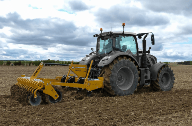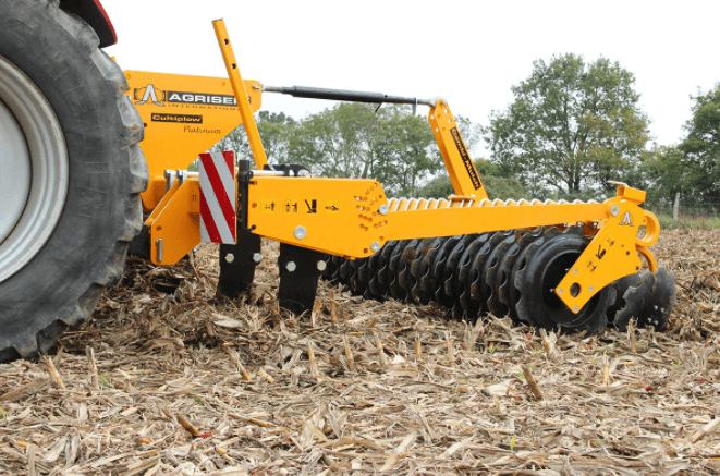 Décliné en largeur de 4,50 à 8 m, le Cultiplow Platinum Repliable est équipé de lames à pointes décalées TCS 750 avec sécurité boulon ou sécurité non-stop à ressort.