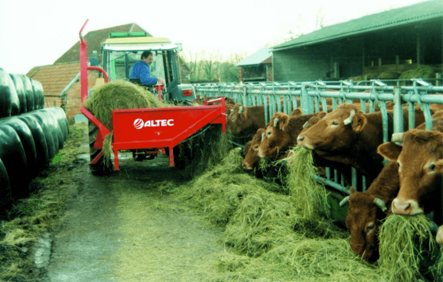 Dérouleuse à fond mobile de conception exclusive ALTEC, pour distribuer en douceur, paille, foin, enrubanné.