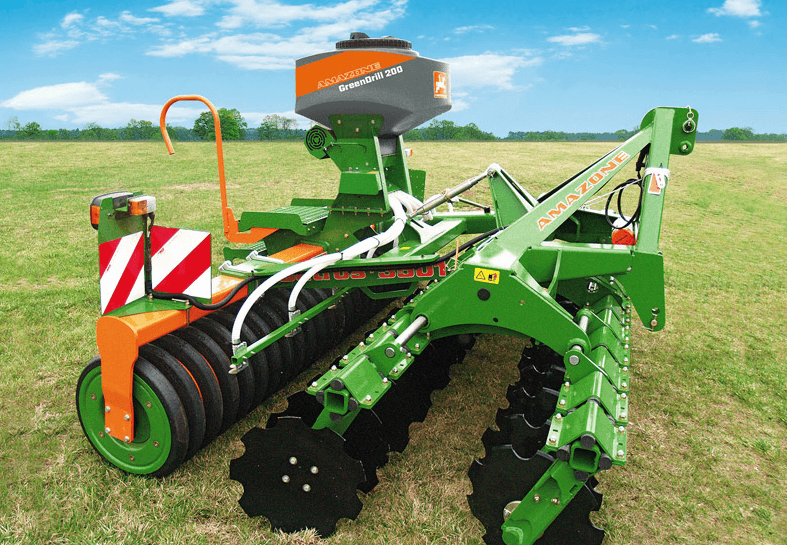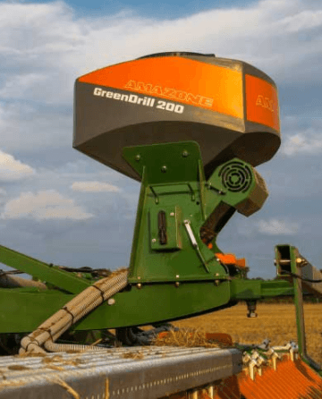 Pour que vous puissiez implanter les cultures intermédiaires directement en même temps que la préparation du sol et pour le semis d’herbe, AMAZONE propose le semoir GreenDrill. Il peut être combiné avec le déchaumeur à disques indépendants Catros, mais également avec le cultivateur Mulch Cenius, le déchaumeur à disques indépendants Certos, le cultivateur rotatif KG ou la herse rotative KE. La semence est répartie par des diffuseurs.