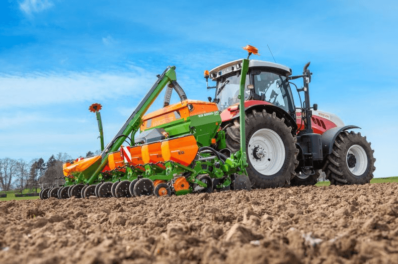 En plus des machines fixes en 3 m et 4,5 m, AMAZONE propose également les variantes rabattables en 4,50 m et 6 m. Par ailleurs, il est possible d'utiliser une trémie frontale comme trémie d'engrais.
