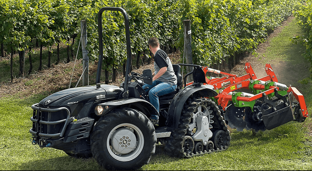 Le Mach 2 est un tracteur réversible à roues directrices équipé de chenilles arrière en caoutchouc et de pneus avant de 20''. Mach 2 est destiné aux cultures pentues où l'adhérence constante de la machine au sol, la traction, la stabilité et la sécurité sont indispensables. La configuration exclusive avec des roues directrices à l'avant et des chenilles en caoutchouc à l'arrière simplifie et sécurise des manœuvres complexes, même le long de pentes et contrepentes accentuées. Ce genre de manœuvres est d'ailleurs impossible à effectuer avec les autres types de tracteurs équipés seulement de pneus standards. Le Mach 2 est un tracteur parfait pour tous les travaux dans les exploitations grâce à une largeur de 1440 mm, un poids de 2915 kg, un moteur Yanmar brillant de 87 ch, une vitesse sur route homologuée pour 35 km/h, un centre de gravité très bas et avec un ample choix d'options dont la cabine ultra confortable StarLight. Ce tracteur est capable de tout faire et de relever toute sorte de défis rapidement et en toute sécurité.