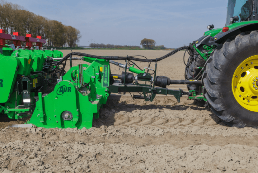 La cape de buttage est contrôlée de série par un régulateur de pression automatique. Un accumulateur dans le circuit hydraulique garantit une pression constante sur la cape. L’utilisateur peut, en outre, opter pour le célèbre système PDC (Proportionally Distance Control), qui permet, à l’aide de deux capteurs ultrasons, de mesurer la quantité de terre contenue dans la cape. Sur la base de ces données, la pression sur la cape est rectifiée pour maintenir un buttage régulier.