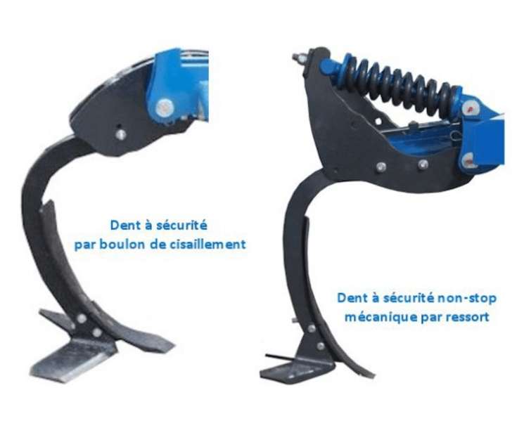 Déchaumeur polyvalent qui permet de travailler en surface lorsque la dent est équipée d'ailerons ou en profondeur lorsque celle-ci n'a qu'une pointe.