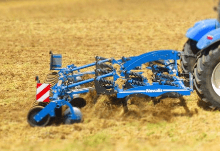Ce modèle de déchaumeur rapide à disques indépendants est muni d'un essieu permettant de limiter la charge sur le tracteur.