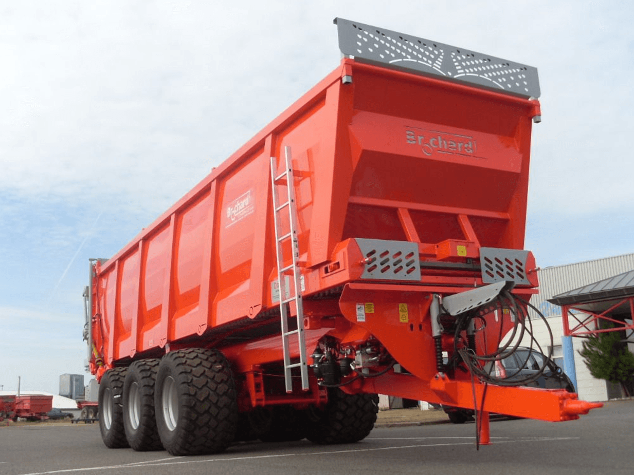 - Caisse monobloc en acier suedois HLE Domex® de 2,20 m de large avec poteaux et bandeaux de ceinture