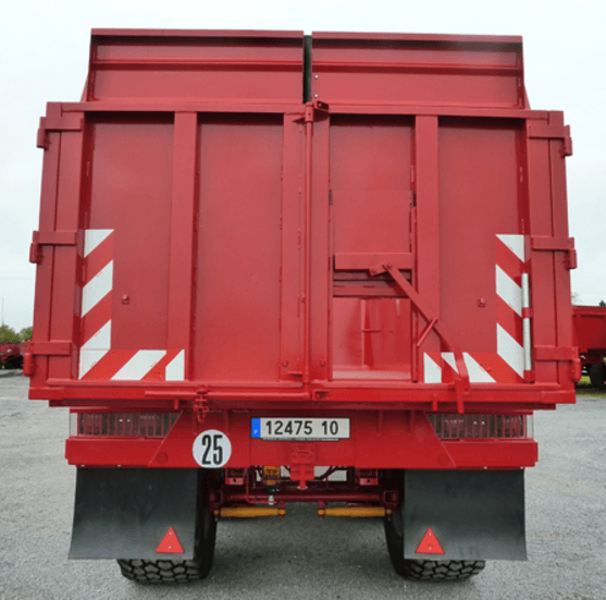 Toutes nos remorques sont équipées d’une flèche avec sécurité en cas de rupture des lames de ressorts, d’une béquille hydraulique, d’un compresseur 1000 tours avec cardan protégé, d’une descente hydraulique, d’une ceinture haut de caisse, de portes arrières articulées, de rehausses augmentant ainsi le volume de la benne tout en permettant de réduire le poids à vide de l’ensemble.