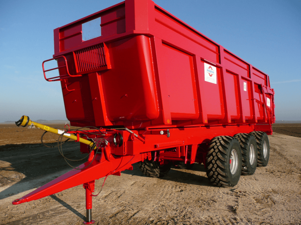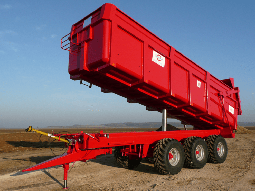 Toutes nos remorques sont équipées d’une flèche avec sécurité en cas de rupture des lames de ressorts, d’une béquille hydraulique, d’un compresseur 1000 tours avec cardan protégé, d’une descente hydraulique, d’une ceinture haut de caisse, de portes arrières articulées, de rehausses augmentant ainsi le volume de la benne tout en permettant de réduire le poids à vide de l’ensemble.