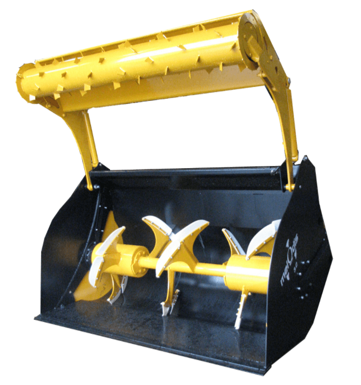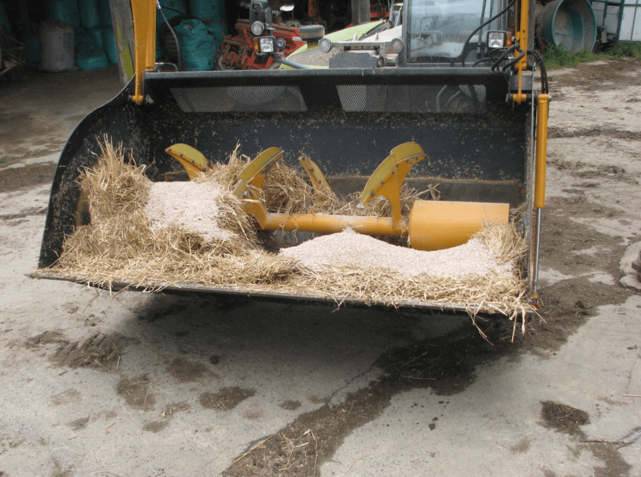 Démontable et composé de 3 parties, le mélangeur hélicoïdal ( mélangeur 100) est en Hardox, l’arbre du moto-réducteur est renforcé et surdimensionné, les pâles (brevetées) sont caissonnées pour assurer un maximum de rigidité indispensable pour le travail dans l’herbe.