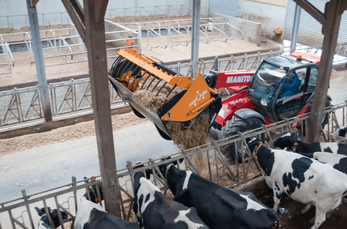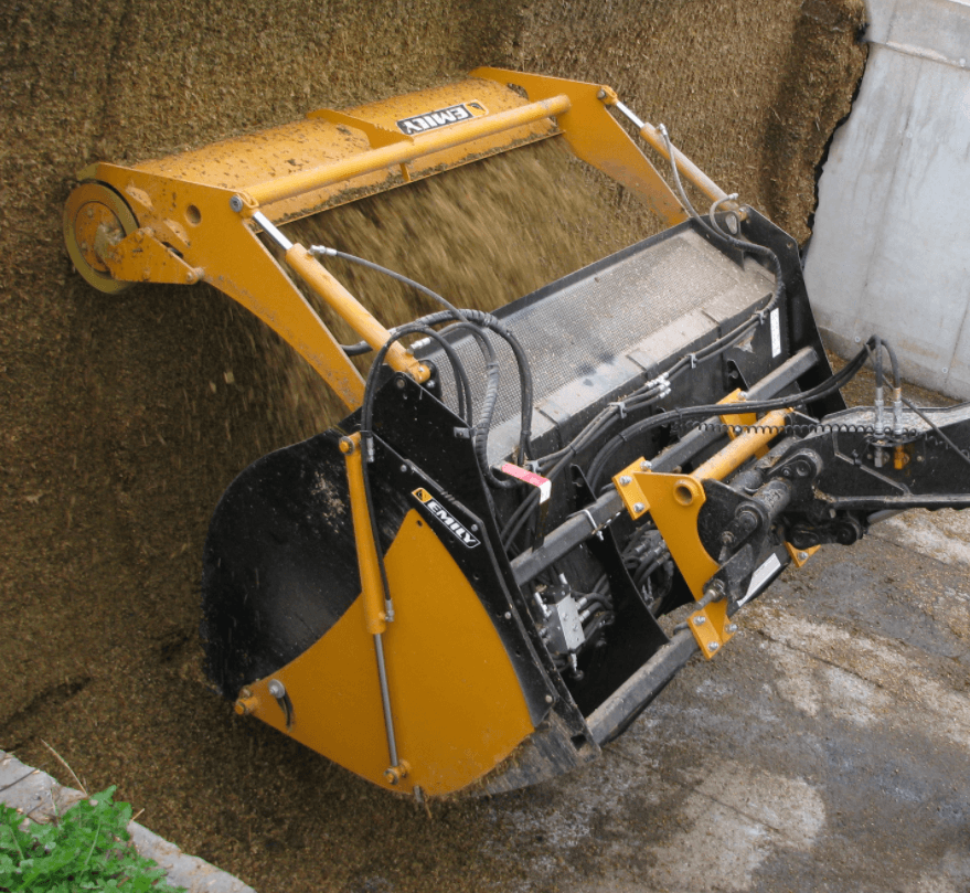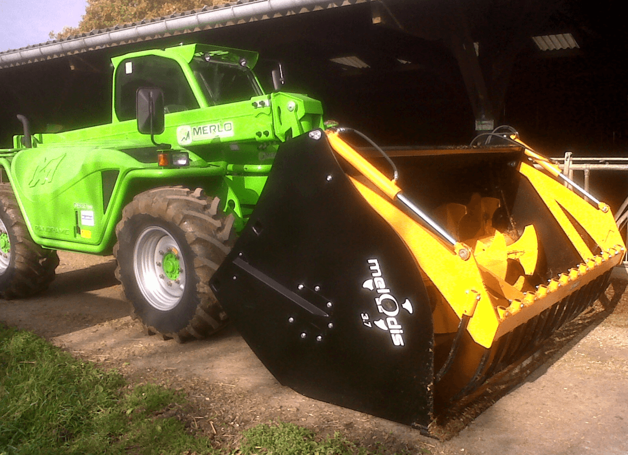 MELODIS mélangeur 50, le nouveau godet désileur mélangeur distributeur Emily, est l’outil idéal pour préparer une ration complète (maïs, herbe et compléments). Le mélangeur hélicoïdal est actionné par une double motorisation hydraulique pour une meilleure répartition des efforts. Le