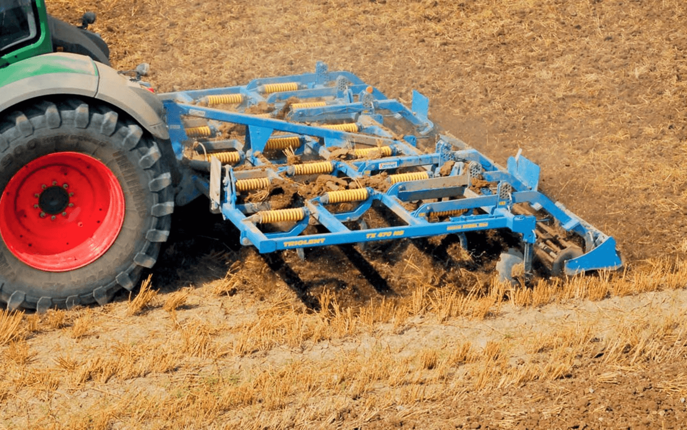 Le cultivateur polyvalent Triolent convient surtout au déchaumage de la surface entière avec un effet intensif de mélange. Il travaille le sol jusqu’à une profondeur de 35 cm et peut ainsi remplacer le labour. La machine assure l’enfouissement des résidus végétaux de qualité.