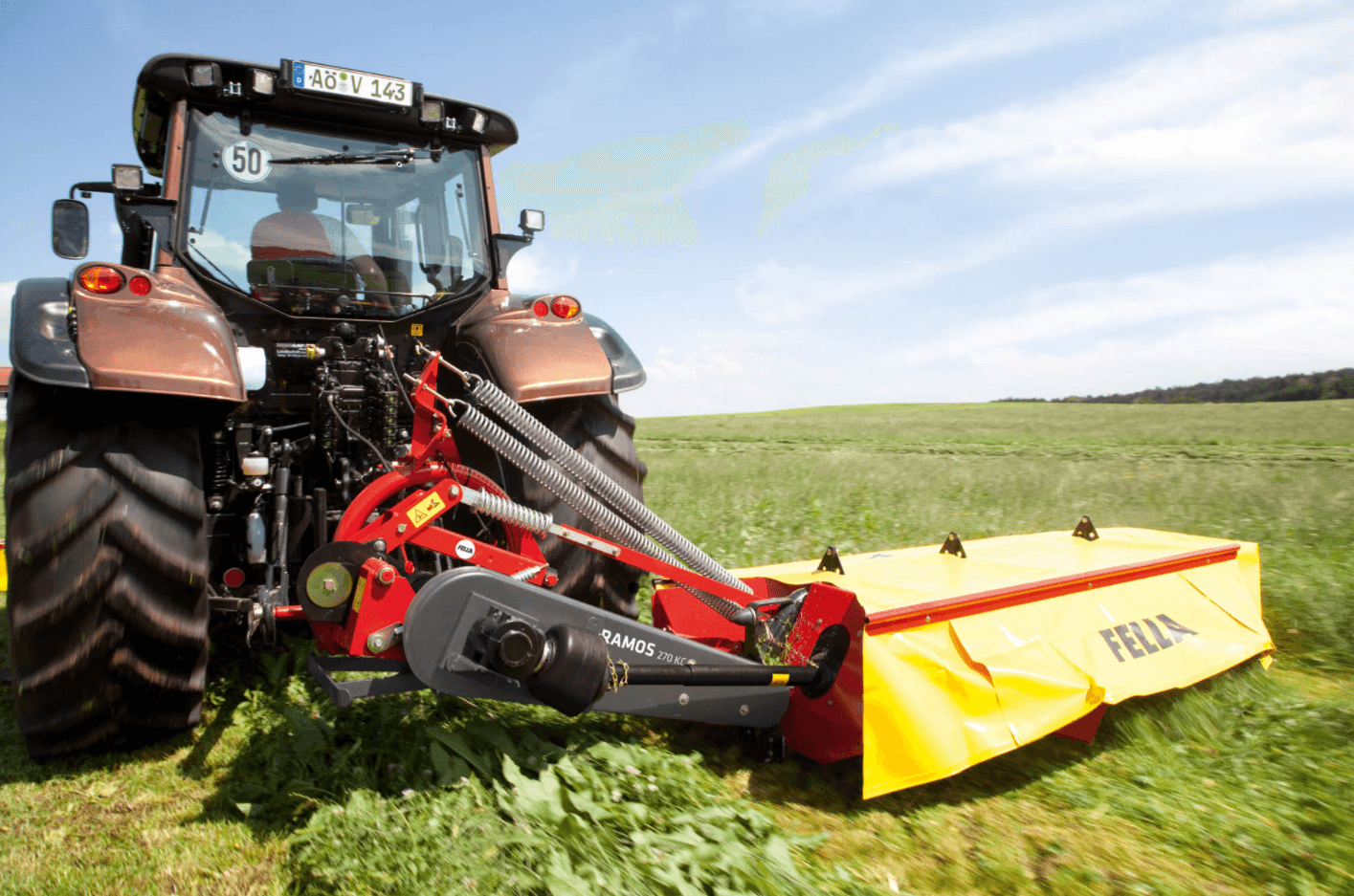- Unité de coupe latérale avec commande du dispositif cinématique de relevage pour une grande hauteur de levage en bout de champ et un grand angle de coupe de la barre de coupe, pour le fauchage des talus et des pentes.