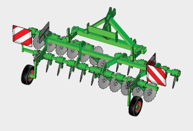 Vibroculteur à dents ou à disques, idéal à l'avant du tracteur en préparation superficielle.