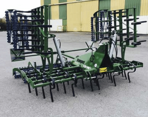 Il est équipé d’un bâti de 5 rangées de dents vibrantes (45 x 12, droites socs réversibles, 32 x 12, demi-droites socs réversibles) qui apporte un fort dégagement et une grande fluidité.