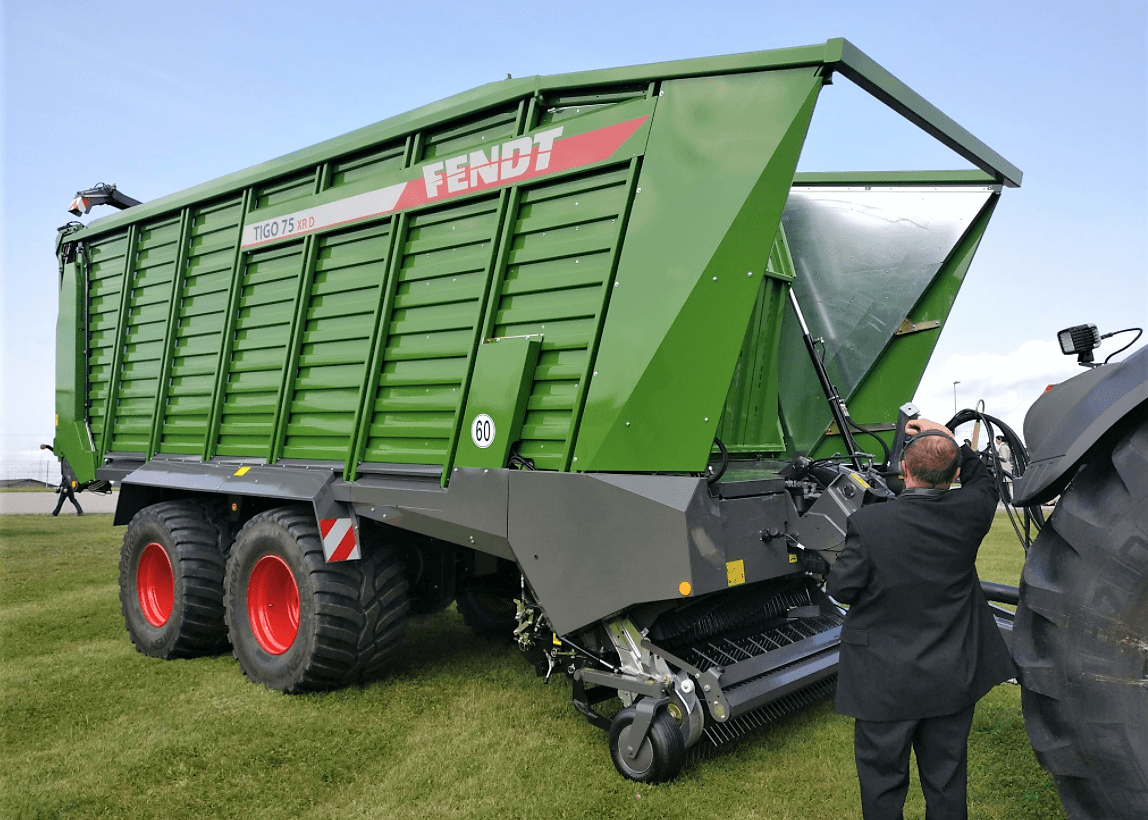 Remorque auto-chargeuse Fendt Tigo XR 65, d'un volume de 38m3 ou 65m3 lorsque le fourrage est compressé. Le PTAC de la remorque autochargeuse Fendt Tigo XR 65 est compris entre 22000 et 24000 et demande un minimum de 180 chevaux. Le pick-up permet une largeur de travail de 200cm, le rotor dispose de 45 dents et permet de couper jusqu'à une longueur minimale de 37mm.