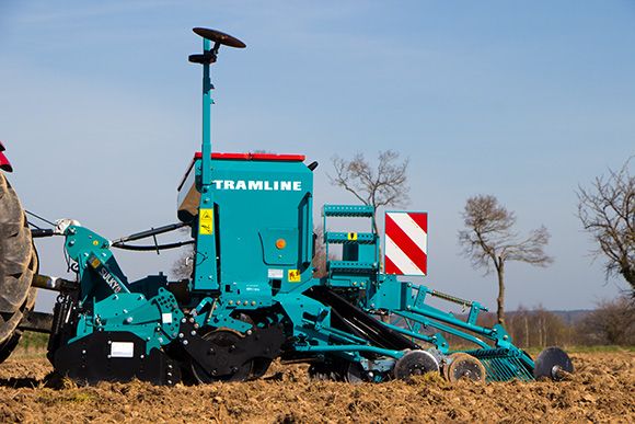 Très intégrée, la trémie des TRAMLINE CE/CX permet de profiter d’un ensemble de semis avec un minimum de porte-à-faux , d’où une meilleure valorisation de la puissance de relevage, ce qui se traduit par une capacité de trémie particulièrement élevée. D’autre part, l’entraînement de la distribution par une grande roue soleil permet une absence totale de traces de roues sur le semis.