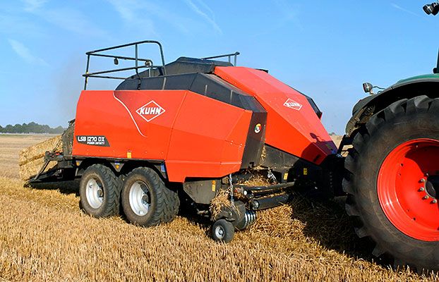 La presse à balles cubiques Kuhn LSB 1270 DX OC permet de confectionner des balles carrées d'une taille de 120*70*300, avec un pick-up de 2.30 m de large. L'option "OC" permet de couper le fourrage grâce à 23 couteaux.