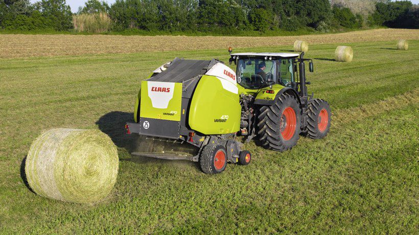 La presse à balles rondes Claas Variant 470 RF permet de confectionner des balles rondes d'une largeur de 1.20 m et d’un diamètre variable allant de 0.90 m à 1.55 m, avec un pick-up de 1.90 m de large.