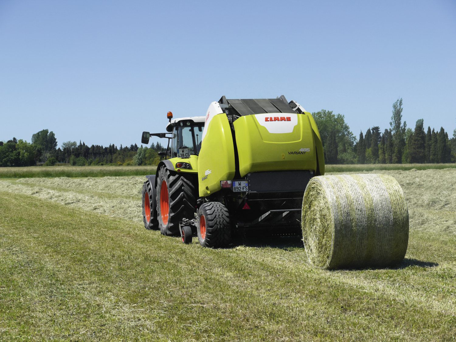 La presse à balles rondes Claas Variant 460 RF permet de confectionner des balles rondes d'une largeur de 1.20 m et d’un diamètre variable allant de 0.90 m à 1.55 m, avec un pick-up de 1.90 m de large.