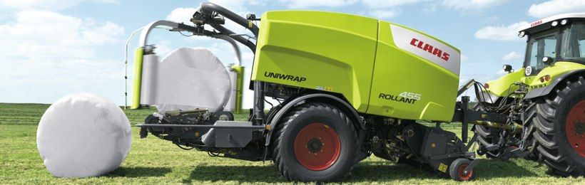 La presse à balles rondes Claas Rollant 454 RC UNIWRAP permet de confectionner des balles rondes d'une largeur de 1.20 m et d’un diamètre allant de 1.25 m à 1.35 m, avec un pick-up de 1.90 m de large. L'option Rotocut permet de couper le fourrage grâce à 16 couteaux.