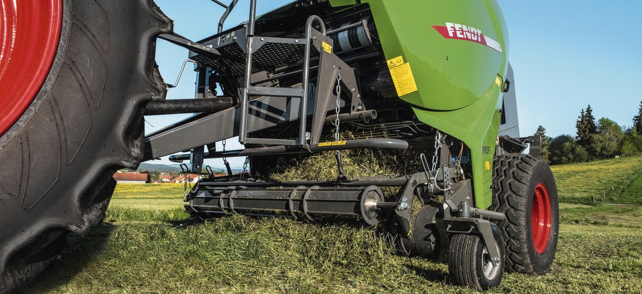 La presse à balles rondes Fendt 1125 F permet de confectionner des balles rondes d'une largeur de 1.23 m et d’un diamètre de 1.25 m, avec un pick-up de 2.00 m de large ou 2.25 en option.
