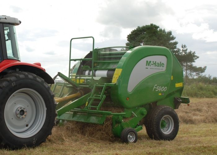 La presse à balles rondes McHale F 5400 permet de confectionner des balles rondes d'une largeur de 1.23 m et d’un diamètre de 1.25 m.