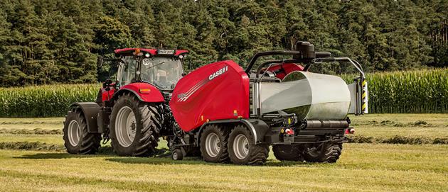 Le combiné presse + enrubanneuse à balles rondes Case IH permet de confectionner des balles rondes enrubannées d'une largeur de 1.22 m et d’un diamètre de 1.25 m, avec un pick-up de 2.20 m de large. L'option de l'unité de coupe permet de couper le fourrage grâce à 20 couteaux.