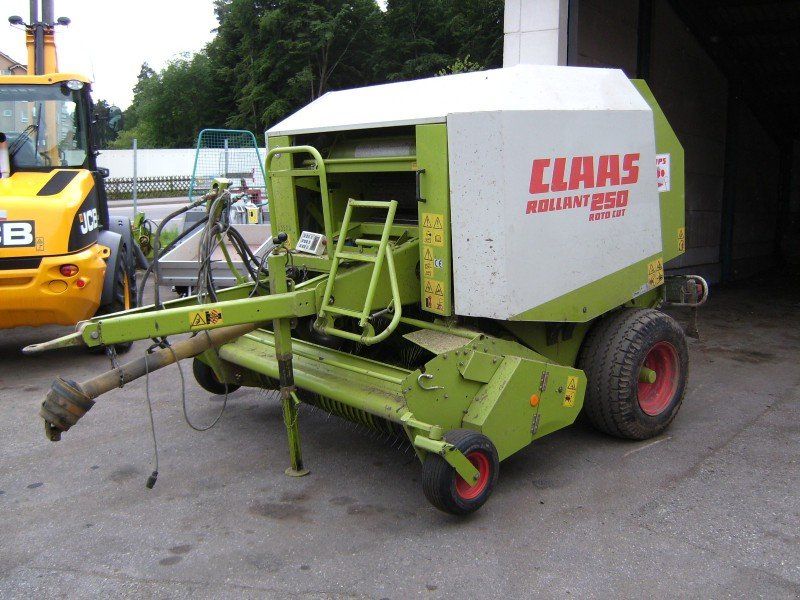 La presse à balles rondes Claas 250 RC permet de confectionner des balles rondes d'une largeur de 1.20 m et d’un diamètre de 1.25 m, avec un pick-up de 2.10 m de large. L'option Roto Cut permet de couper le fourrage grâce à des couteaux.