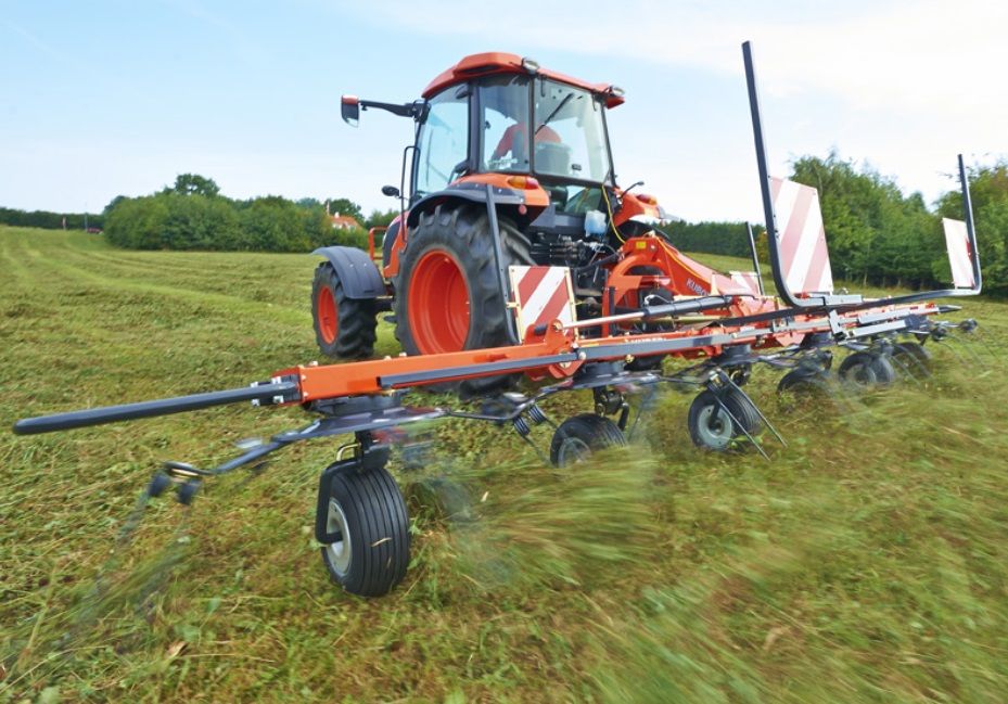 Kubota propose 4 versions de faneuses standards exigeant un faible niveau de maintenance et offrant une largeur de travail de 4.6 à 8.05m.