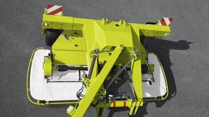 Deux vérins à double effet sont combinés afin que la faucheuse pivote vers la droite ou la gauche et que toute la largeur soit utilisée. La DISCO T CONTOUR est proposée avec une largeur de travail de 3,00 m ou de 3,40 m et avec un conditionneur à rouleaux ou à doigts.