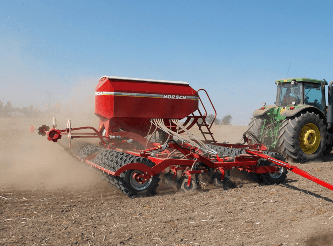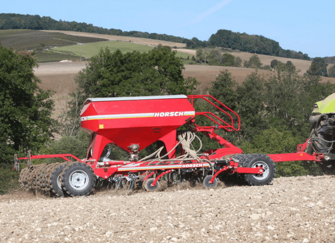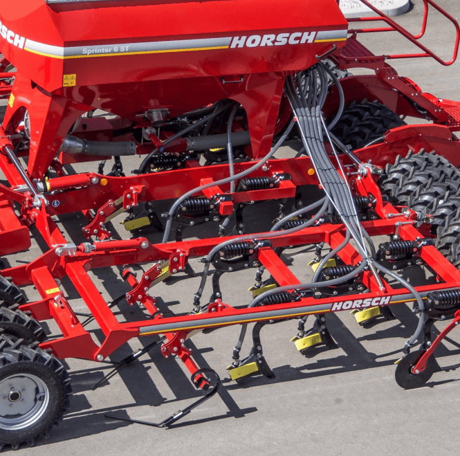 Le semoir Sprinter est équipé de socs Duett ce qui permet, en un passage de semer et fertiliser Largeur de travail : 6 m Largeur de transport : 3 m Poids selon équipements (kg) : 5200 Capacité de trémie/rehausse (l) 3000/ 3700 Capacité double trémie (l) 3 800 (40/ 60) Dim. ouverture de remplissage (m) 1,00 x 2,40 (trémie simple) 1,00 x 0,90/1,50 (trémie double) Haut.remplissage/ avec rehausse/ trémie double: 2,55 / 2,85 / 2,75 m Nombre de socs / rangée : 24/ 3 diamètre du packer : 65 cm Vitesse de travail (km/h) 8 à 15 Puissance mini. nécessaire : 180 ch Traceurs hydrauliques Série DrillManager AG ou ME Série Eclairage Série
