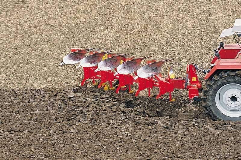 Les Pottinger de la série "Servo 55" sont des charrues réversibles lourdes de 4 et 5 corps pour tracteur jusqu'à 220 ch. Sur une poutre massive en acier à grain fin micro-allié sont fixés solidement les corps et les accessoires.