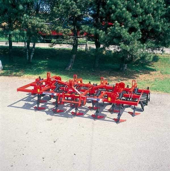 La série Quivogne Maxiculteur porté existe en version à chassis rigide de 2,20 m à 5 m de largeur de travail et en chassis repliable de 3,80 m à 5 m (transport : 3 m).