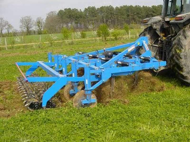 - Bâti tube de 100x 100 x 8 mm - Entraxe poutre : 750 mm - Attelage 3 points à broches entre chapes n° 2/3, semi auto en option - Dégagement sous bâti : 750 mm - Dents rigides ou non-stop - Pas entre dents 450 mm - Soc pointe + versoir double ailettes monobloc de 480 mm - Disques mixeurs Ø 450 mm sur moyeux à roulements coniques - Rouleau arrière Ø 445 mm, 8 barres de 25 mm ou rouleau packer Ø 480 mm - Puissance requise par dent : 15 ch.