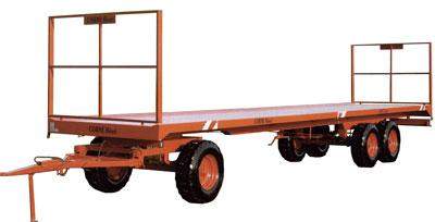 Caractéristiques du plateau à paille Corne CP: Châssis constitué en fer IPE et traverses en UPN et tubes de grandes section. Rond d'avant train à billes de forte capacité de charge. Fond tôle plane de 3 mm avec bords inclinés ou tôle larmée 3/5 à bord plat. Fourragères rabattables spéciales balles rondes sur CP 8 et CP 10, droites et emboîtables sur sur CP 12, CP 15 et CP 20. Moulinets de tension avant et arrière. Essieu avant sur ressorts, tandem arrière, feux de gabarit sur CP 12, CP 15 et CP 20 Essieu avant freiné sur CP 15 et CP 20. Éclairage conforme au code de la route - Gyrophare. Finition: peinture 2 couches apprêt anti-rouille et 2 couches laque polyuréthane En photo : le CP12