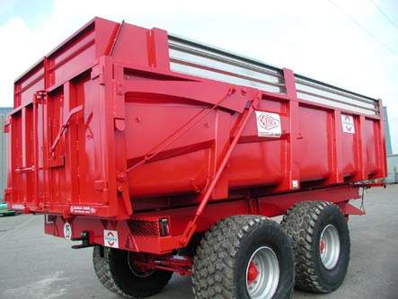Charge utile : 14 t Poids à vide : 5,73 t Volume avec réhausses : 18 m3 Dimensions de la caisse (L x l x h en mètres) : 5,40 x 2,22 x 1,10 (+40cm de réhausses) Epaisseur du fond (en mm) : 4 Epaisseur des côtés (en mm) : 3 Type d'essieu : boggie