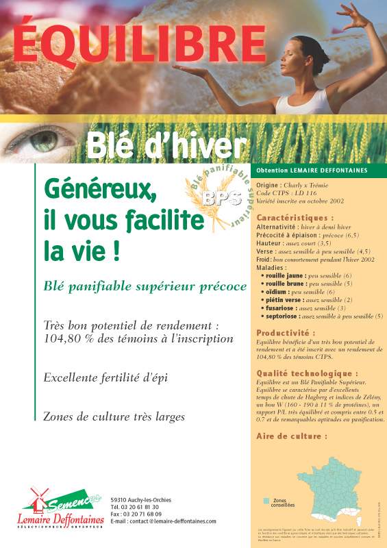 Caractéristiques de la variété de blé d'hiver "Equilibre" de Lemaire Deffontaines: