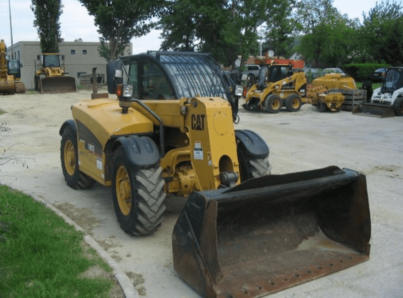 Puissance : 86 ch Moteur : Caterpillar cylindrée : 4230 cm3 Type de transmission : hydrostatique vitesse maxi : 32 km/h capacité de levage maxi : 2500 kg hauteur de levée maxi : 5,50 m longueur hors-tout : 4,20 m hauteur hors-tout : 2,13 m garde au sol : 40 cm empattement : 2,30 m
