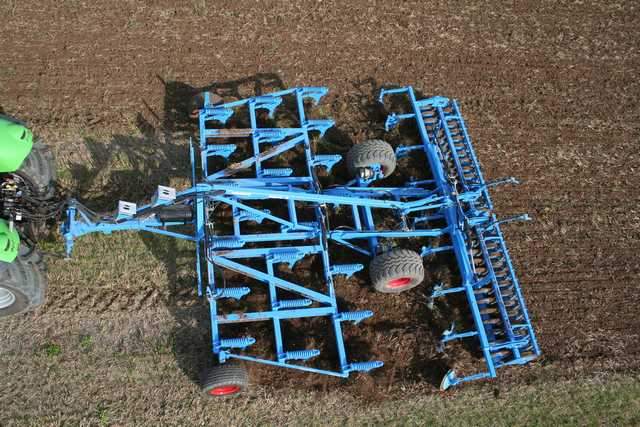 Derrière les dents, on trouve une rangée de disques étoilés qui veillent à un nivellement optimal. Les disques étoilés et le rouleau suiveur forment une seule unité, ce qui dispense de refaire le réglage des disques si la profondeur de travail change. En raison de leur contour en étoile, les disques s’adapteraient particulièrement bien aux différentes profondeurs de travail.