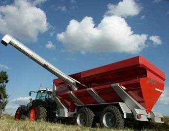 D'après le constructeur, la cinématique particulière de sa vis de vidange permet de vider sur le coté de 2,00 m à plus de 4,60 m de hauteur.Quatre minutes suffisent à transborder 25 tonnes de céréales.