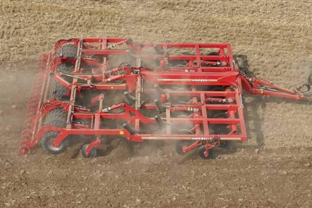 Le Horsch Tiger MT est constitué en premier lieu de deux rangées de disques de grand diamètre (66 cm) qui coupent les résidus. Les deux rangées équipées de dents TerraGrip effectuent ensuite un mélange intensif avant que la rangée de disques arrière nivelle le travail. Enfin, le packer à pneus consolide le sol.