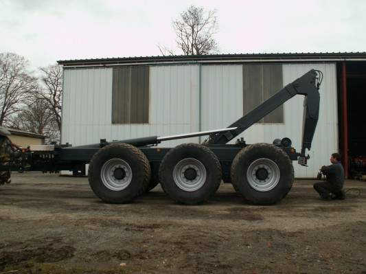 Les Ets Lamotte construisent des remorques porte-caisson homologuées de 20 à 32 tonnes avec distributeur électrique, essieu fixe, suiveur, ou directionnel.