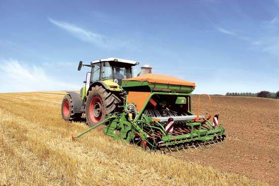 Le semoir Rapid'Illico Amazone Stratos résulte de l'association de la herse rotative Amazone Cultimix, du rouleau sillonneur Matrix, des disques RoTec+ et de flexidoigts. La trémie possède une capacité de 2000 litres.