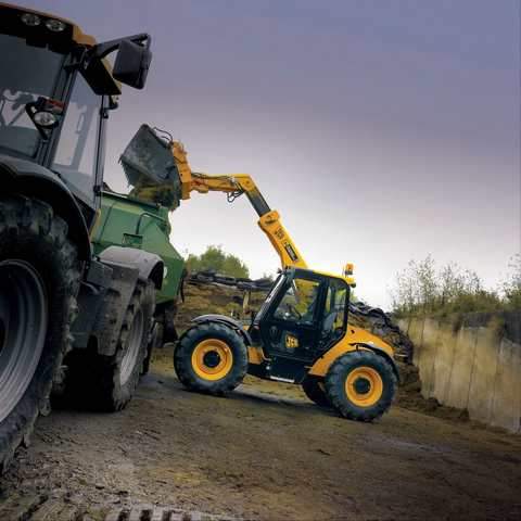 Le nouveau JCB 526-56 AGRI Plus a une hauteur de levage de 5.6m sous les fourches et une capacité de charge de 2.6 tonnes.