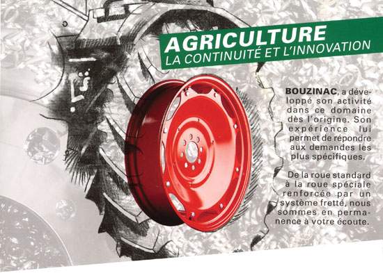 Bouzinac Industrie est spécialisée dans la production de roues acier, de l'unité à la petite et moyenne série - sur une vaste gamme de 8" à 57" - pour les marchés du Génie Civil, Travaux publics, Poids Lourds, Manutention, Grues autoportées, Agricole en première monte et remplacement.