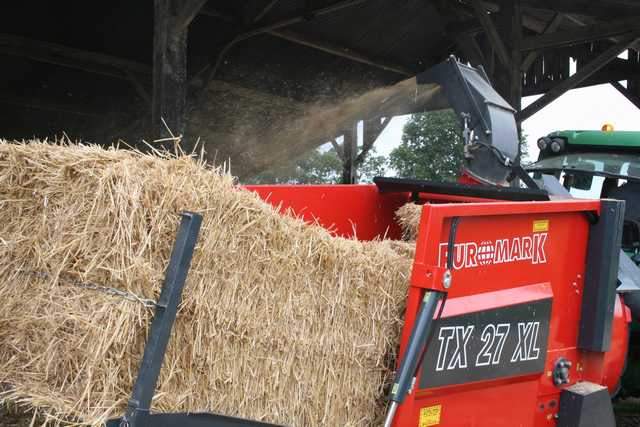 Pour les logettes, poulaillers, la nutrition ou le mulching, utilisation de la pailleuse Euromark Polycut en brins courts.