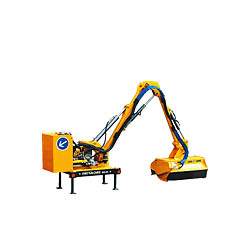 La suspension oléopneumatique apporterait une souplesse dans la manipulation et assurerait un suivi lors de hauteurs de terrain différentes. Une sécurité par bielle à trajectoire dégagente est présente sur la flèche et assure le recule du bras de débroussaillage en cas d'obstacle. Le groupe de broyage possède une position "Float" mise en œuvre depuis le poste de conduite qui assure un suivi de terrain.