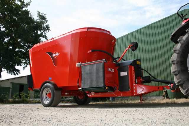 L’offre Kuhn en mélangeuses distributrices s’étoffe avec l’arrivée dès le 1er janvier 2010 de sa nouvelle gamme baptisée Profile. Cette nouvelle génération de mélangeuses à 2 vis verticales à été développée pour offrir la possibilité aux éleveurs équipés de bâtiments difficiles d’accès de travailler en ration mélangée. Les Kuhn Profiles, des mélangeuses adaptées à tous les bâtiments : - volumes disponibles de 14 et 18 m3 pour les troupeaux laitiers de 65 à 140 vaches laitières et les troupeaux allaitants utilisant une part importante de fibres dans la ration. - compacité : hauteur hors tout de la machine à partir de 2,46 m pour le modèle 14 m3 et ce avec une largeur extérieure aux roues de 2,31 m. Ces dimensions sont permises par la position des roues à l’extérieur de la caisse. - recoupe et mélange de tous les fourrages (ensilages, foin, paille, herbe enrubannée…) et ce quel que soit le format des balles : rondes, cubiques… Les Kuhn Profile, ration mélangée de qualité : - La conception de vis de mélange avec un pas double sur le dernier quart de spire permettrait un foisonnement plus important des fourrages et donc un mélange plus rapide. - Le système de pesée électronique Kuhn T10 équipe en standard la gamme. La version Kuhn T75 permettant la programmation des rations (80 rations possibles, 20 composants et 10 lots de déchargement) est proposée en option. - Demande de puissance limitée : la géométrie de la caisse dite « étroite » permettrait de réduire considérablement la demande de puissance. Distribution par tapis transversal : - Le tapis de distribution frontal permet le déchargement à droite comme à gauche de la machine. - En option, le déport hydraulique de 250 mm du tapis principal ou l’association d’un tapis inclinable permet au Kuhn Profile de décharger dans tous les types d’auges.