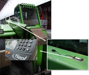 Le système de pesée Fliegl pour chargeurs télescopiques repose sur un capteur d'élongation étanche monté sur le bras du télescopique. Ce capteur est branché directement sur l'écran.
